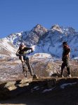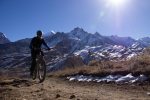 We lost the remainder of the day’s altitude with the aid of some flowing singletrack on a shallow enough gradient that it was safe to let go of the brakes (Kim kept her’s on as usual) and just let the bike drift as we snaked down to the village of Ekla Bhatti below. With hot tea and a snack inside us, and plenty of time before dark we pushed back up the last section, played around taking photos, and used up most of our remaining energy before the final cruise to Jomsom along the valley floor.