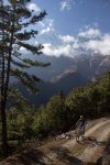 Though not back to full force, Vaughan was definitely whinging less – in trekking terms this is close enough to a complete recovery that it can be ignored from this point forth. Out on the trails, we climbed the same path that we had done the previous day on our extracurricular path finding, but this time we carried on up the hill past the village before taking a different descent. A nice section of trail with switchbacks leading back to river level – that was for those of us lucky enough to be riding without a pair of children from the village in hot pursuit. The kids were chasing the scent of candy – something they obviously associate with us pale tourist folk. Kim cracked under the pressure of the chase and took a small tumble. Nothing wounded other than her pride, and fortunately our stocks of confectionery were also still intact.