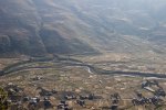 Our route took us past a Buddhist Gompa ( / Stupa / Temple) where we took a break after one hard climb. From here we could see one of the flights coming out from the Jomsom airstrip, and flying out below us.