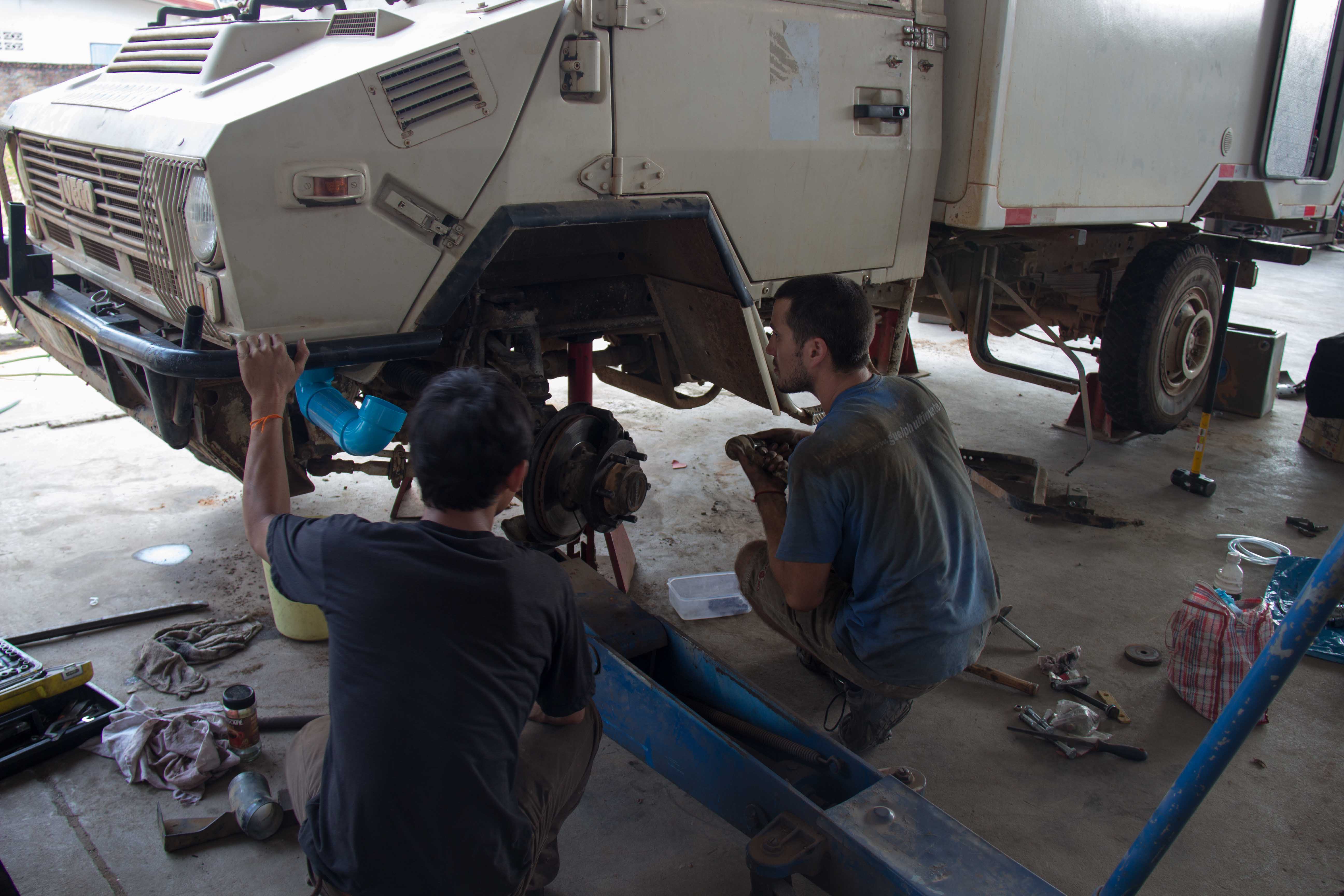 We were at the garage by 8am despite the daily, and somewhat infuriating, haggling process to get tuk-tuk drivers to agree to a price that was anywhere near reasonable. Work got underway slowly, but although nothing got finished today, we were starting to figure out a way forward for most of it.