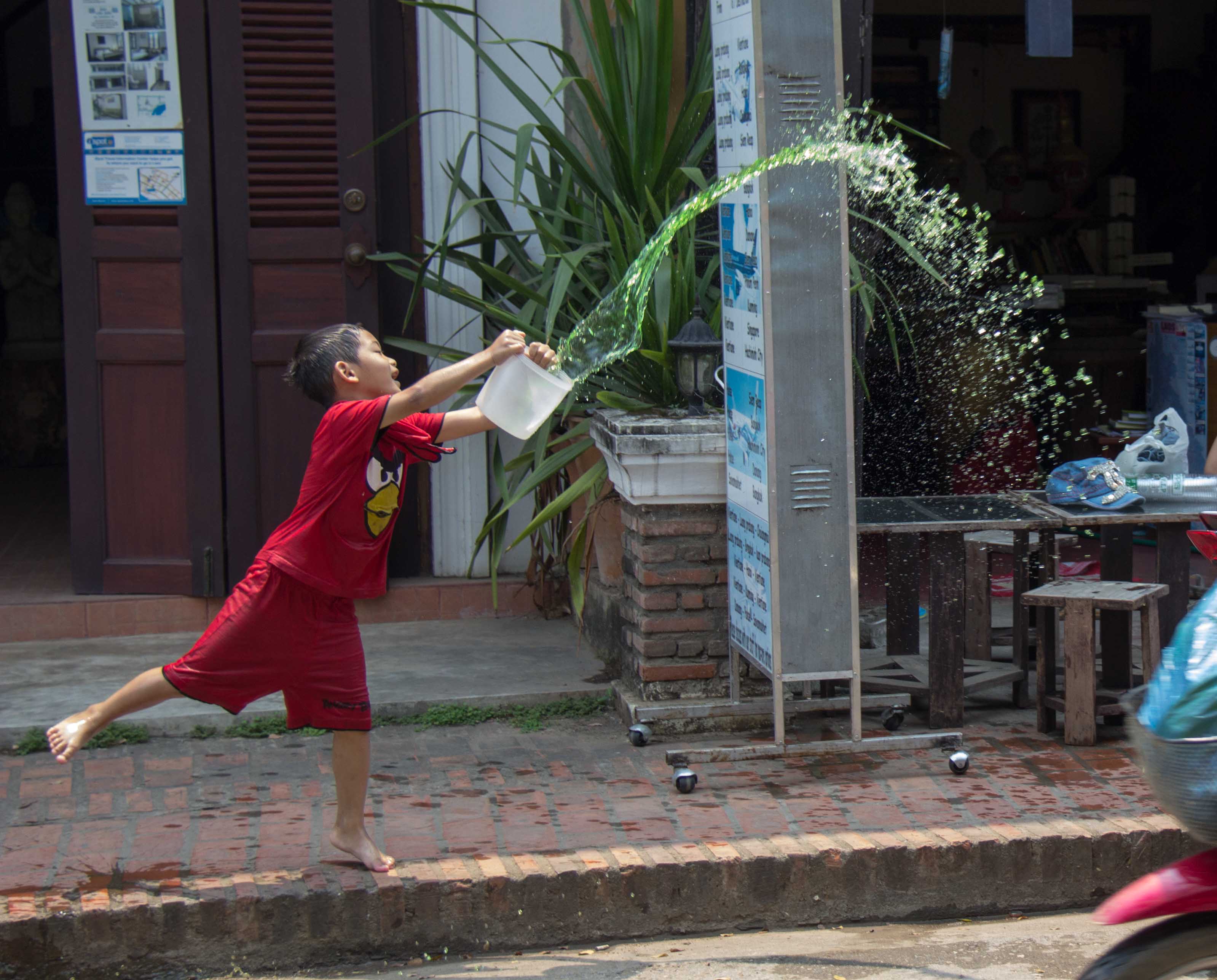 Probably the greatest of Vaughan’s birthday treats was that he now had the chance to ride Ben’s motorcycle through the twisting mountain roads that lead the way to Luang Prabang. All he’d have to do was try not to get too severely pelted as he passed through the makeshift road blocks / water fight ambushes that lined the route into town as the New Year celebrations started to take off.