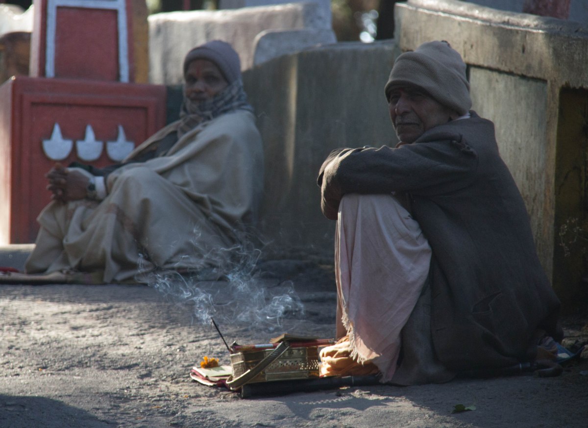 Beggars lining the paths to the Stupas